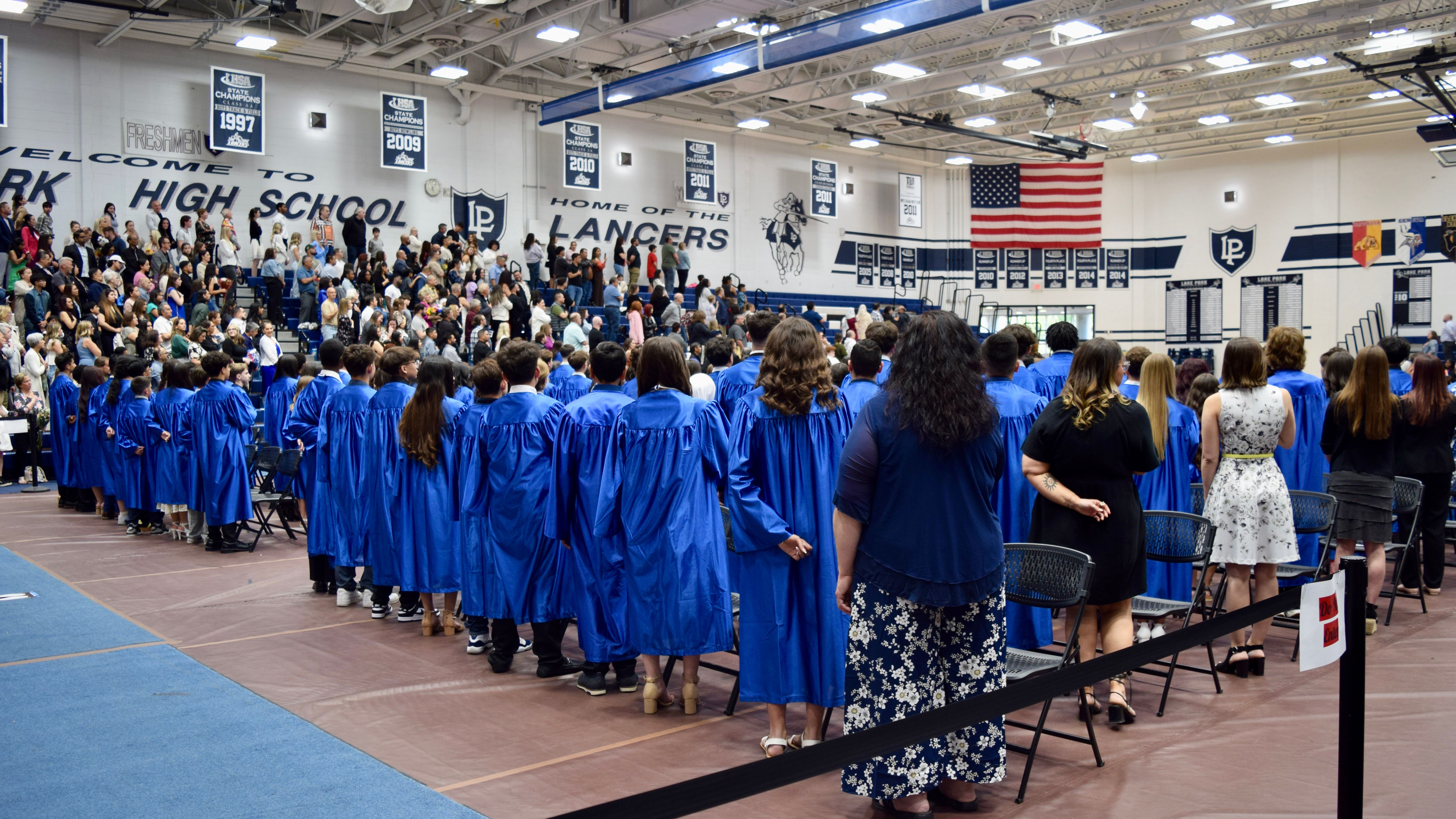 Promotion Ceremony students facing US Flag